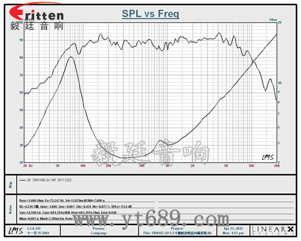 音圈阻抗(voice coil impedance):3.4Ω