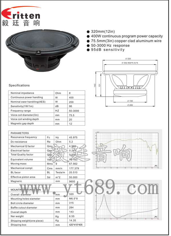 東莞市毅廷音響科技有限公司嚴(yán)格貫徹質(zhì)量讓您放心、服務(wù)讓您舒心、價(jià)格讓您動(dòng)心,此款12寸專業(yè)舞臺低音喇叭的額定功率為150W,最大峰值300W,音域50Hz~3KHz,超重低音炮,下潛力深。