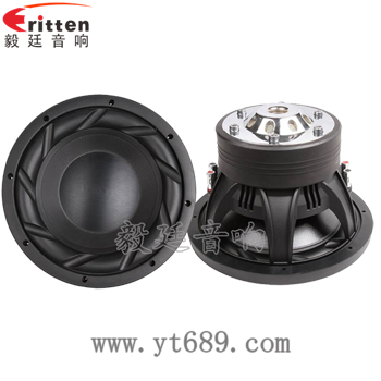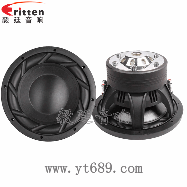 12寸圓形重低音喇叭,高純度的鋁盆架,采用了加強(qiáng)加寬壓鑄磨砂鋁盆架,承載著大型磁路和振動系統(tǒng),保證了大功率工作時的穩(wěn)定性;