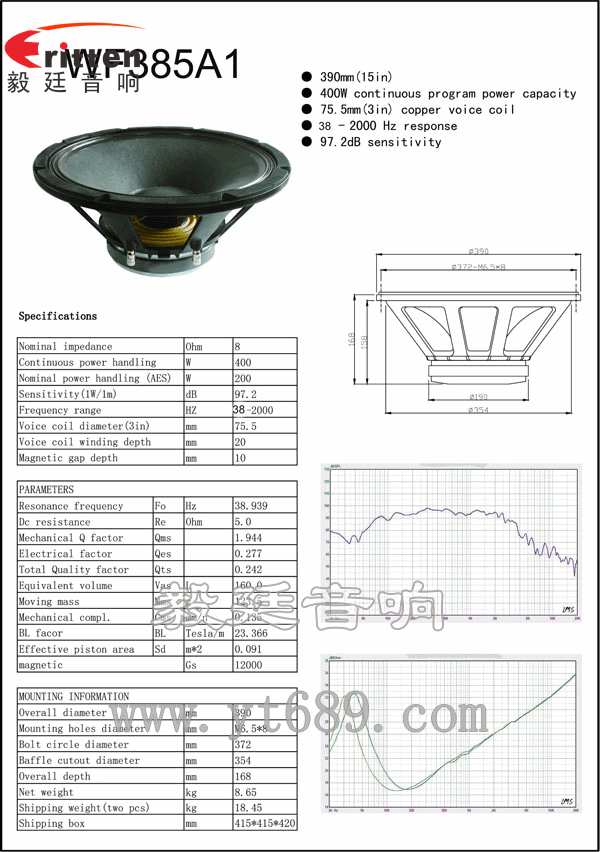 采用的是布邊紙盆紙帽,75芯銅線音圈,具有耐磨性,和耐高溫,低頻極震撼,強(qiáng)勁有力。