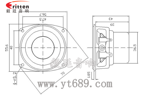 56mm異型鐵盆架內(nèi)磁全頻喇叭,采用的是功率大,使音色完美,飽滿。