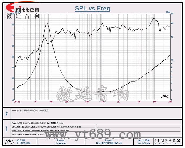 頻率范圍(freq response):83Hz~20KHz