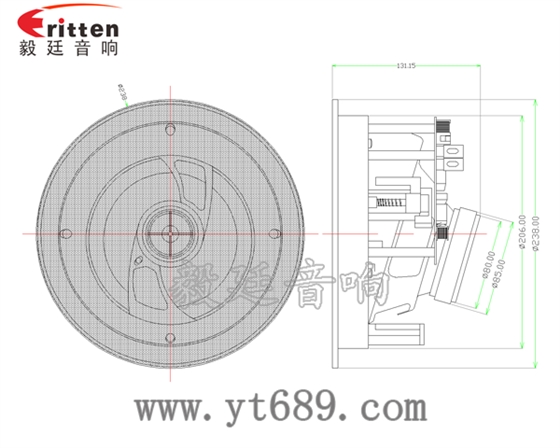 描述:圓形塑料盆架橡膠邊PP盆25芯外磁6.5寸40瓦天花全頻喇叭;