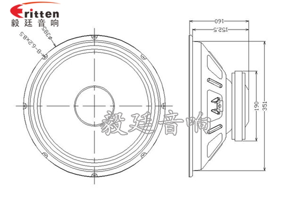 毅廷音響8''250w 重低音喇叭正反面