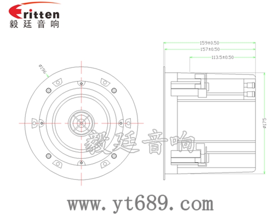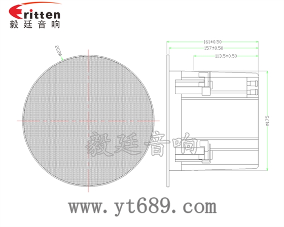 描述:圓筒鐵盆架橡膠邊PP盆兩路外磁5寸25瓦全頻同軸天花喇叭;