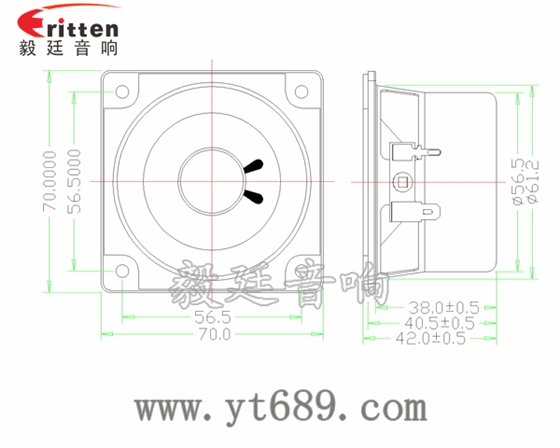 描述:此款方型鐵盆架布邊紙盆2.75寸13芯10瓦中高音喇叭;