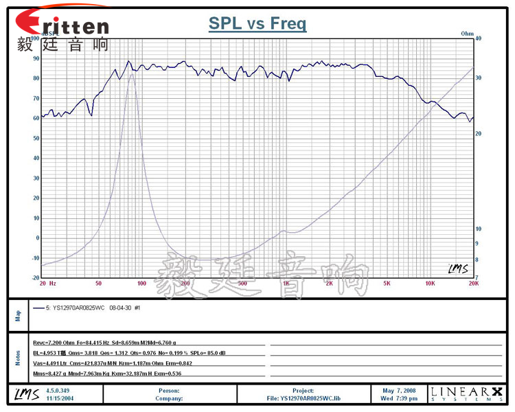 ★頻率范圍(freq response):84Hz~7KHz