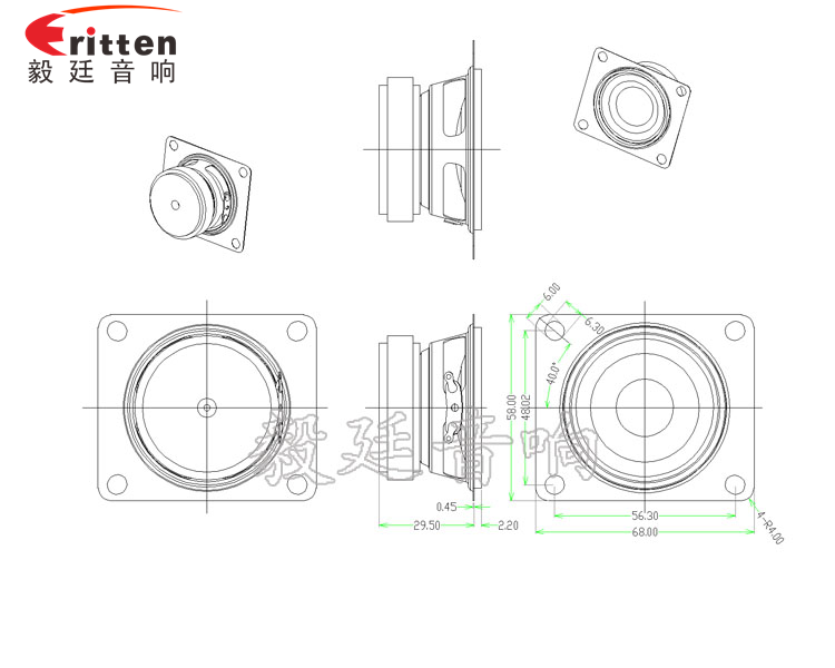 58mm方型銀色鐵盆架外磁全頻喇叭,采用的是高性能、高密度鐵氧體,磁性強(qiáng)、靈敏度高,使音質(zhì)清晰自然;