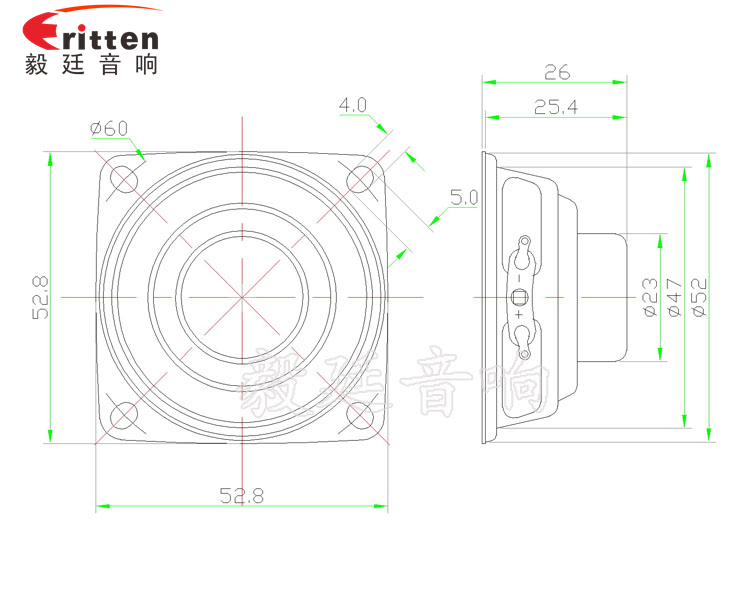 53mm蘋果形鐵盆架內(nèi)磁全頻喇叭,采用高性能釹鐵硼,密度高,靈敏度高;