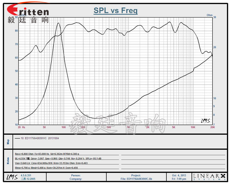頻率范圍(freq response):83Hz~13KHz