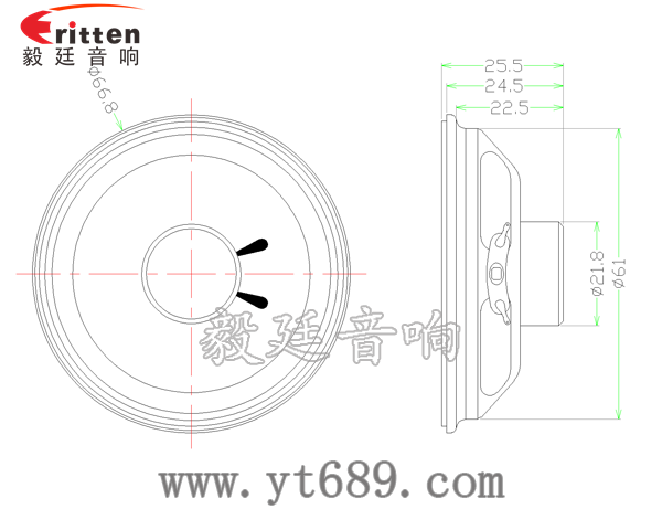 2.5寸圓形鐵盆架內(nèi)磁全頻喇叭,采用了高性能的釹鐵硼永久磁,性能穩(wěn)定好,音色清晰;