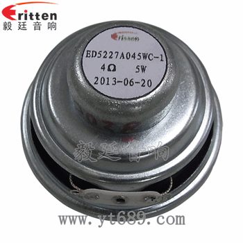 描述:圓形鐵盆架橡膠邊銀色防水鍋底內(nèi)磁雙磁52mm 4Ω5w16芯全頻喇叭;
