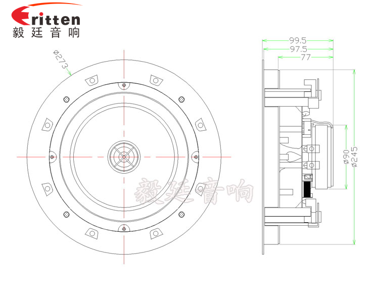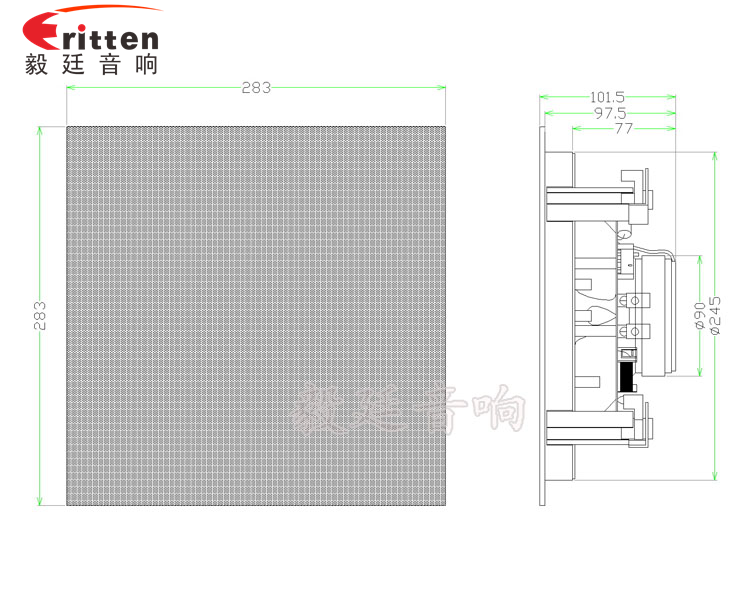 這款天花喇叭的外觀防塵罩,用的是高密度金屬網(wǎng)罩進過環(huán)保烤漆工藝,手感平滑,不褪色、不生銹、不氧化、超窄邊有圓形和正方形兩種防塵罩形狀,帶八個超強磁吸鐵,可吸性強,外觀大氣、精美,是毅廷喇叭工程師精心研發(fā)的一款超完美的8寸天花吸頂式喇叭。