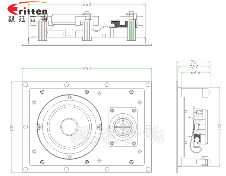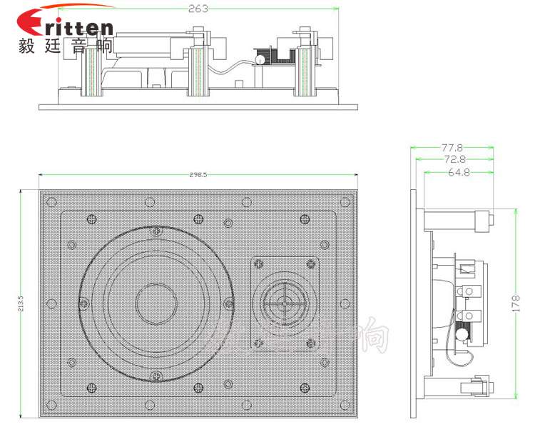 5.25寸方型塑料盆架外磁全頻喇叭,采用的是頂級(jí)元件±3dB分頻器,可完美的控制揚(yáng)聲器的中、高、低音,悅耳,超精美的銅材質(zhì)鍍金按壓式接線端子,配上紅黑正負(fù)極之分,接線方便;