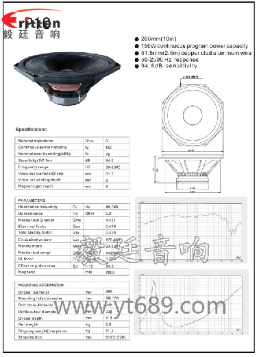 此款優(yōu)異用于10寸舞臺(tái)重低音喇叭上,額定功率為75W,最大能承載150W,音色清晰、強(qiáng)勁有力。