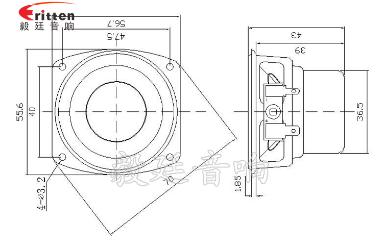 56mm異型鐵盆架內(nèi)磁全頻喇叭,采用的是高品質(zhì)稀土高強磁,使音色完美,飽滿;