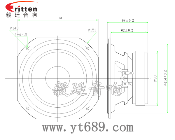 5.25寸方形鐵盆架中低音喇叭,采用的是高性能鐵氧體磁鋼,為揚聲器在大動態(tài)工作時提供充足動力,充分展示動態(tài)特性好的特點,磁場密度高,磁性強,有利聲音的更好爆發(fā)力;
